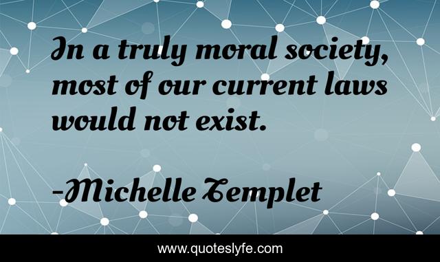 This page presents the quote "In a truly moral society, most of our current laws would not exist.". Author of this quote is Michelle Templet. This quote is about politics, philosophy, morality,.