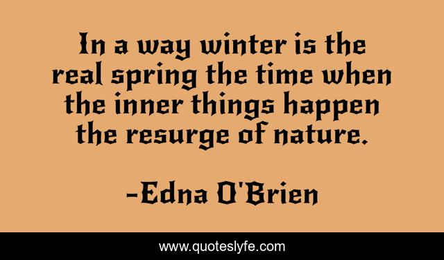 This page presents the quote "In a way winter is the real spring the time when the inner things happen the resurge of nature.". Author of this quote is Edna O'Brien. This quote is about positive, confidence, creating, change,.