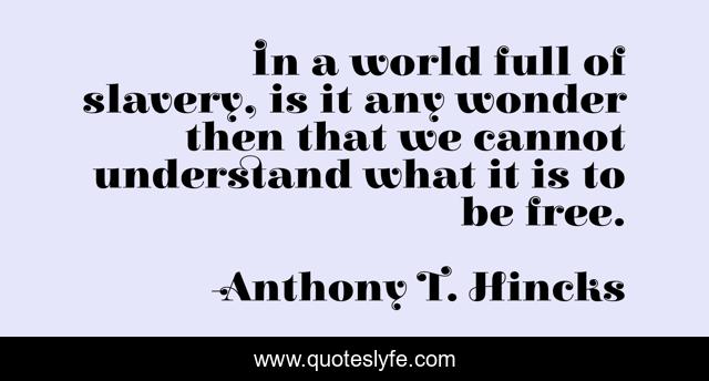 This page presents the quote "In a world full of slavery, is it any wonder then that we cannot understand what it is to be free.". Author of this quote is Anthony T. Hincks. This quote is about world, philosophy, understand, slavery, free,.