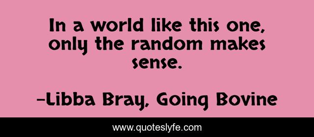 This page presents the quote "In a world like this one, only the random makes sense.". Author of this quote is Libba Bray, Going Bovine. .