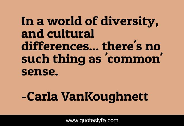 This page presents the quote "In a world of diversity, and cultural differences... there's no such thing as 'common' sense.". Author of this quote is Carla VanKoughnett. .