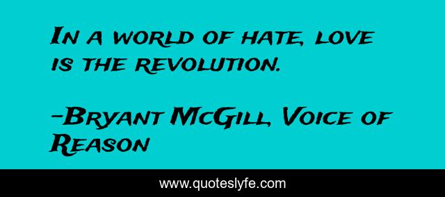 This page presents the quote "In a world of hate, love is the revolution.". Author of this quote is Bryant McGill, Voice of Reason. This quote is about hate, love, fact, affection,.