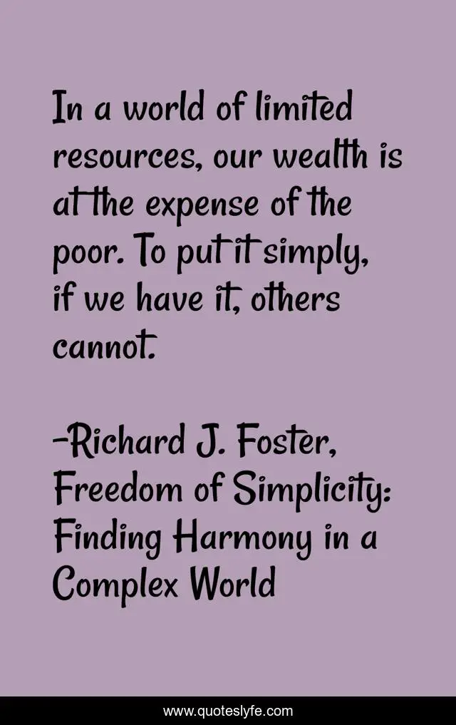 "Richard J. Foster, Freedom of Simplicity: Finding Harmony in a Complex World Quotes." Quoteslyfe.com, 2025. Mon. 08 Dec. 2025. <https://www.quoteslyfe.com/quote/In-a-world-of-limited-resources-our-135284>.
