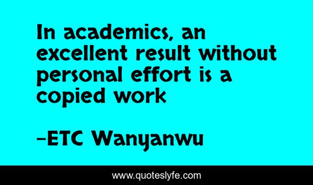 This page presents the quote "In academics, an excellent result without personal effort is a copied work". Author of this quote is ETC Wanyanwu. This quote is about education, degree, success,.