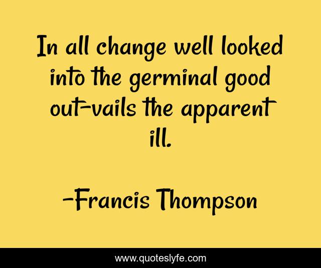 This page presents the quote "In all change well looked into the germinal good out-vails the apparent ill.". Author of this quote is Francis Thompson. .