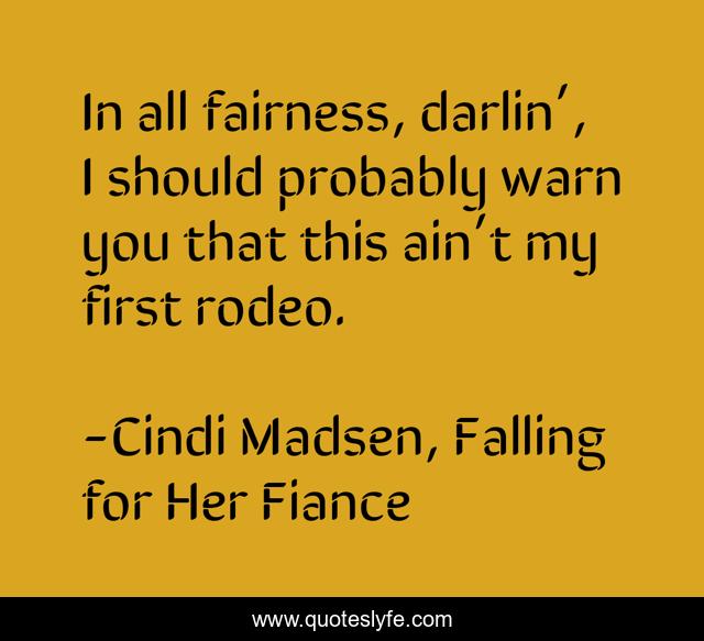 This page presents the quote "In all fairness, darlin’, I should probably warn you that this ain’t my first rodeo.". Author of this quote is Cindi Madsen, Falling for Her Fiance. .