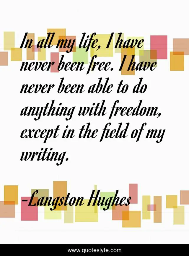 This page presents the quote "In all my life, I have never been free. I have never been able to do anything with freedom, except in the field of my writing.". Author of this quote is Langston Hughes. This quote is about life, free, writing,.