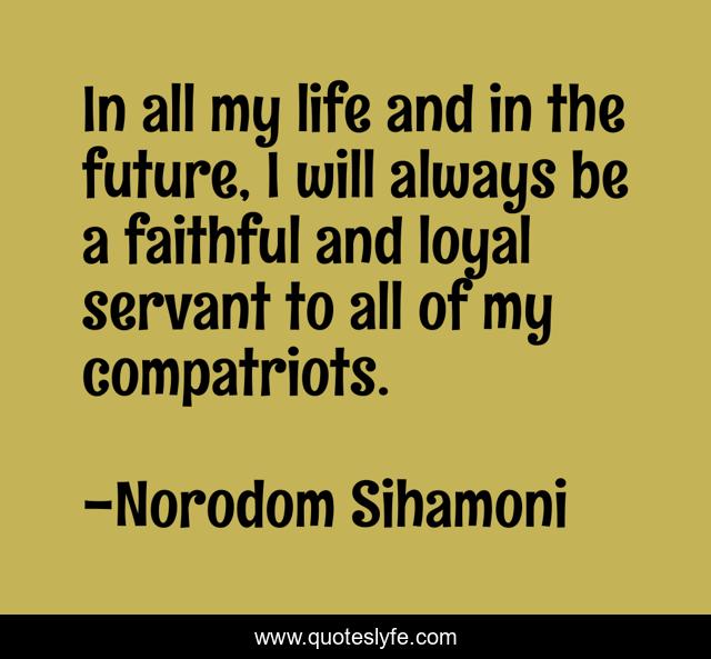 This page presents the quote "In all my life and in the future, I will always be a faithful and loyal servant to all of my compatriots.". Author of this quote is Norodom Sihamoni. This quote is about servant, life, my life,.
