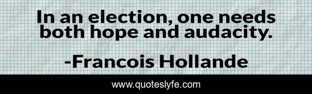 This page presents the quote "In an election, one needs both hope and audacity.". Author of this quote is Francois Hollande. This quote is about audacity, needs, election,.