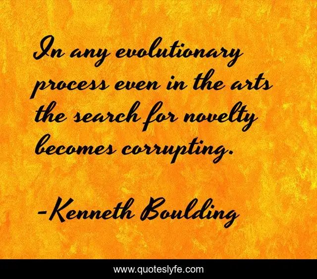 This page presents the quote "In any evolutionary process even in the arts the search for novelty becomes corrupting.". Author of this quote is Kenneth Boulding. This quote is about art, artist,.