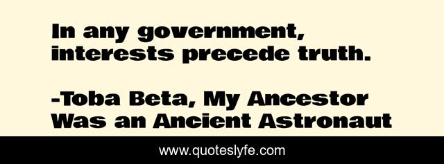 "Toba Beta, My Ancestor Was an Ancient Astronaut Quotes." Quoteslyfe.com, 2025. Sat. 06 Dec. 2025. <https://www.quoteslyfe.com/quote/In-any-government-interests-precede-truth-10055>.