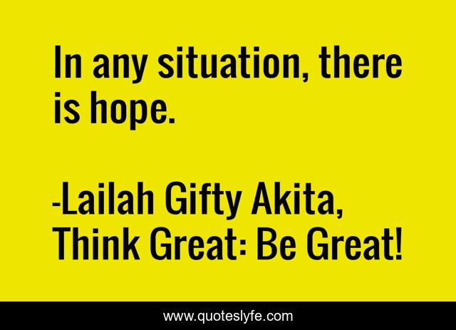 "Lailah Gifty Akita, Think Great: Be Great! Quotes." Quoteslyfe.com, 2025. Fri. 05 Dec. 2025. <https://www.quoteslyfe.com/quote/In-any-situation-there-is-hope-95070>.