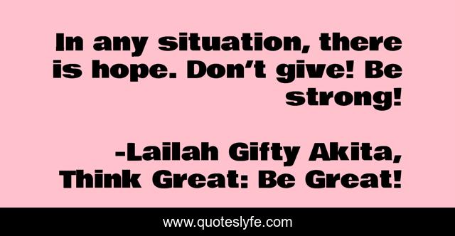 "Lailah Gifty Akita, Think Great: Be Great! Quotes." Quoteslyfe.com, 2025. Mon. 08 Dec. 2025. <https://www.quoteslyfe.com/quote/In-any-situation-there-is-hope-Don-91736>.
