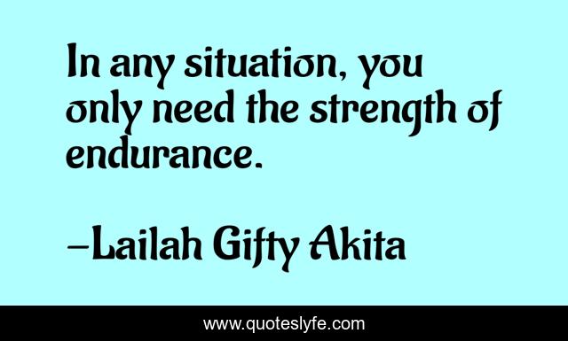 This page presents the quote "In any situation, you only need the strength of endurance.". Author of this quote is Lailah Gifty Akita. This quote is about overcomer, advice, endurance, life-lessons,.