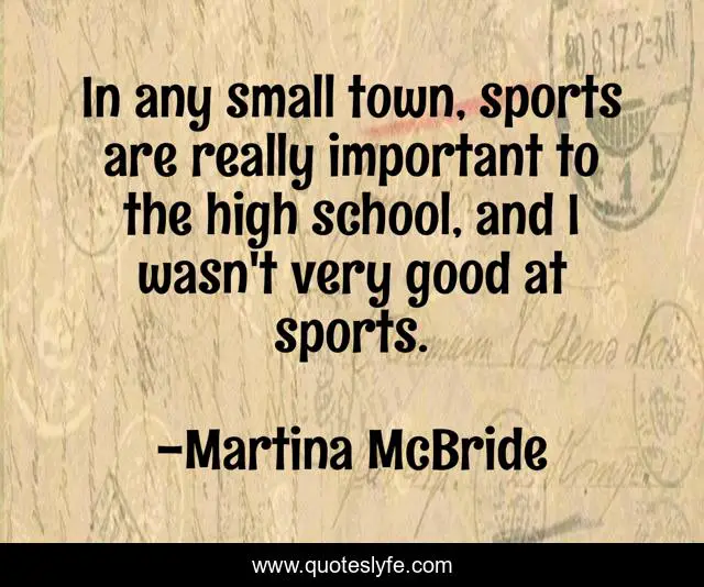 This page presents the quote "In any small town, sports are really important to the high school, and I wasn't very good at sports.". Author of this quote is Martina McBride. This quote is about small, school, good,.