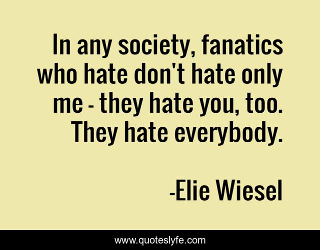 "Elie Wiesel Quotes." Quoteslyfe.com, 2025. Fri. 05 Dec. 2025. <https://www.quoteslyfe.com/quote/In-any-society-fanatics-who-hate-don-329090>.