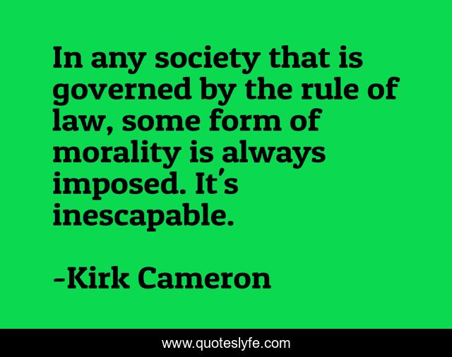 This page presents the quote "In any society that is governed by the rule of law, some form of morality is always imposed. It's inescapable.". Author of this quote is Kirk Cameron. This quote is about always, law, morality,.