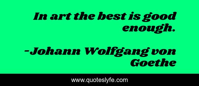"Johann Wolfgang von Goethe Quotes." Quoteslyfe.com, 2025. Sat. 06 Dec. 2025. <https://www.quoteslyfe.com/quote/In-art-the-best-is-good-enough-317984>.