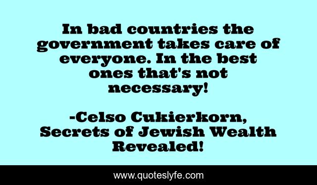 "Celso Cukierkorn, Secrets of Jewish Wealth Revealed! Quotes." Quoteslyfe.com, 2025. Mon. 08 Dec. 2025. <https://www.quoteslyfe.com/quote/In-bad-countries-the-government-takes-care-174336>.