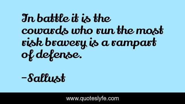 This page presents the quote "In battle it is the cowards who run the most risk bravery is a rampart of defense.". Author of this quote is Sallust. This quote is about battle, risk, bravery,.