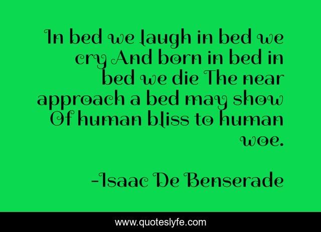 This page presents the quote "In bed we laugh in bed we cry And born in bed in bed we die The near approach a bed may show Of human bliss to human woe.". Author of this quote is Isaac De Benserade. .