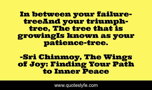 This page presents the quote "In between your failure-treeAnd your triumph-tree, The tree that is growingIs known as your patience-tree.". Author of this quote is Sri Chinmoy, The Wings of Joy: Finding Your Path to Inner Peace. This quote is about failure, patience,.