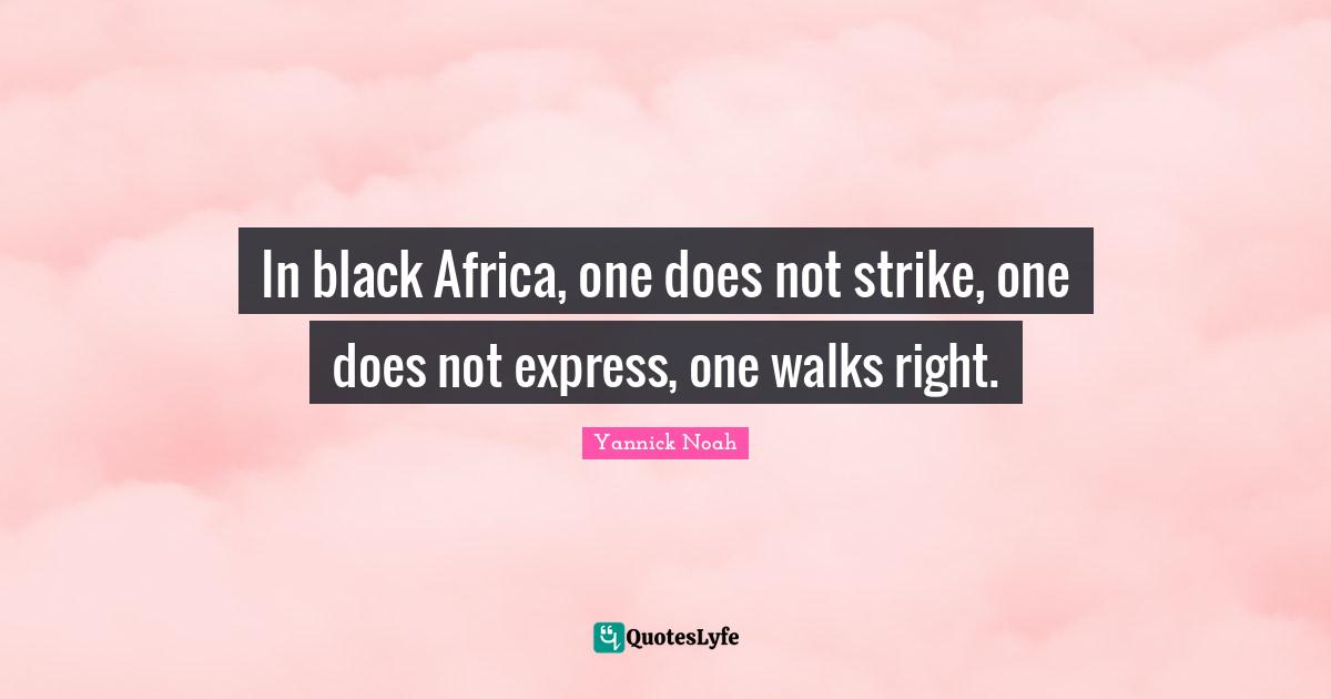 This page presents the quote "In black Africa, one does not strike, one does not express, one walks right.". Author of this quote is Yannick Noah. This quote is about sports, doe, black, walks,.