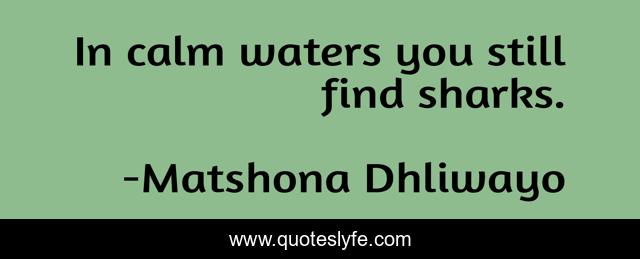 "Matshona Dhliwayo Quotes." Quoteslyfe.com, 2025. Fri. 05 Dec. 2025. <https://www.quoteslyfe.com/quote/In-calm-waters-you-still-find-sharks-57634>.