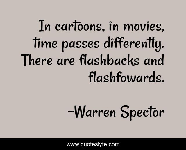 This page presents the quote "In cartoons, in movies, time passes differently. There are flashbacks and flashfowards.". Author of this quote is Warren Spector. This quote is about time passes, cartoons, time,.