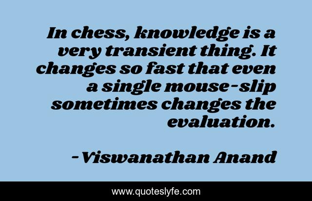 This page presents the quote "In chess, knowledge is a very transient thing. It changes so fast that even a single mouse-slip sometimes changes the evaluation.". Author of this quote is Viswanathan Anand. This quote is about changes, chess, fast,.