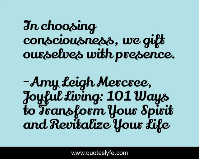 "Amy Leigh Mercree, Joyful Living: 101 Ways to Transform Your Spirit and Revitalize Your Life Quotes." Quoteslyfe.com, 2025. Mon. 08 Dec. 2025. <https://www.quoteslyfe.com/quote/In-choosing-consciousness-we-gift-ourselves-with-15059>.