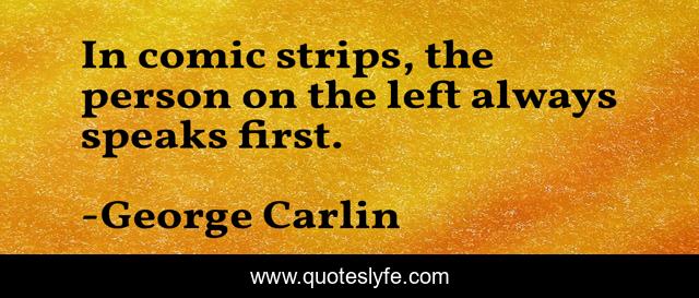 This page presents the quote "In comic strips, the person on the left always speaks first.". Author of this quote is George Carlin. This quote is about always, first, person,.
