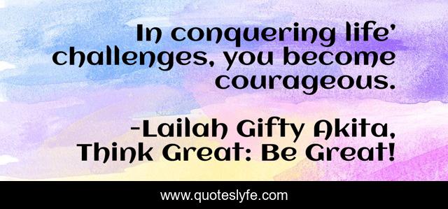 "Lailah Gifty Akita, Think Great: Be Great! Quotes." Quoteslyfe.com, 2025. Sun. 07 Dec. 2025. <https://www.quoteslyfe.com/quote/In-conquering-life-challenges-you-become-courageous-91692>.