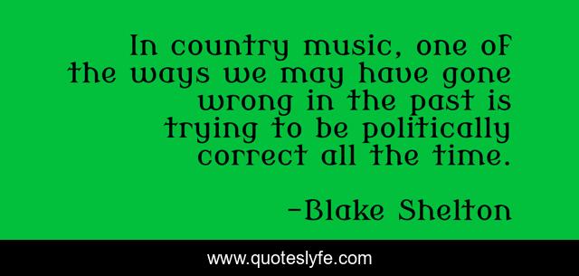 This page presents the quote "In country music, one of the ways we may have gone wrong in the past is trying to be politically correct all the time.". Author of this quote is Blake Shelton. This quote is about past, country music, time,.