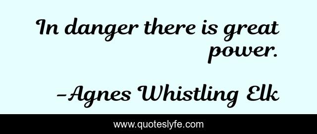 "Agnes Whistling Elk Quotes." Quoteslyfe.com, 2025. Sat. 06 Dec. 2025. <https://www.quoteslyfe.com/quote/In-danger-there-is-great-power-275300>.