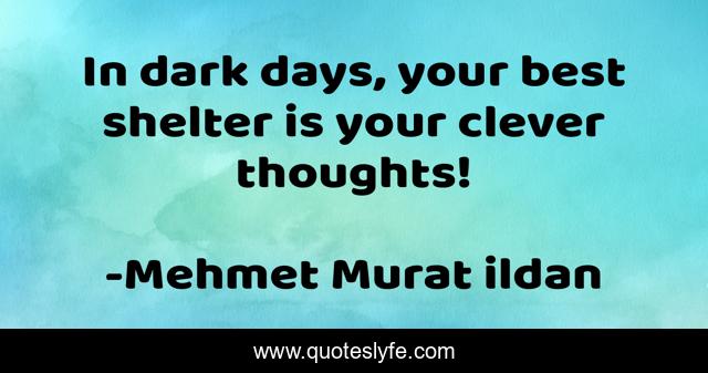 This page presents the quote "In dark days, your best shelter is your clever thoughts!". Author of this quote is Mehmet Murat ildan. .