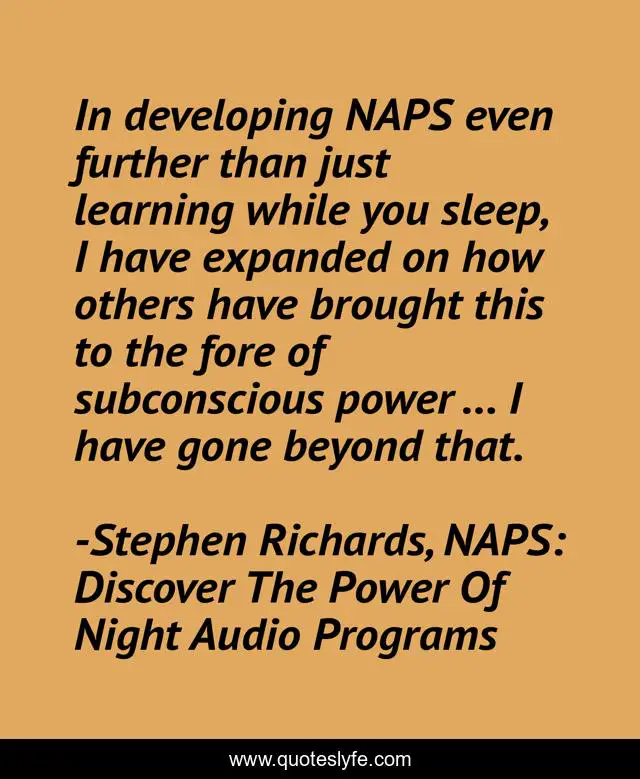"Stephen Richards, NAPS: Discover The Power Of Night Audio Programs Quotes." Quoteslyfe.com, 2025. Fri. 05 Dec. 2025. <https://www.quoteslyfe.com/quote/In-developing-NAPS-even-further-than-just-159511>.