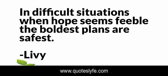 This page presents the quote "In difficult situations when hope seems feeble the boldest plans are safest.". Author of this quote is Livy. .