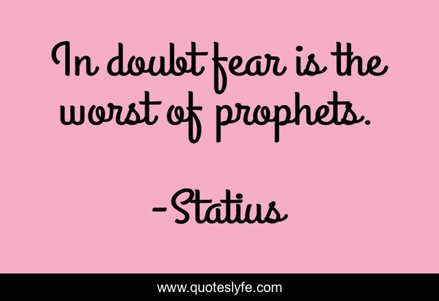 This page presents the quote "In doubt fear is the worst of prophets.". Author of this quote is Statius. This quote is about uncertainties, doubts,.