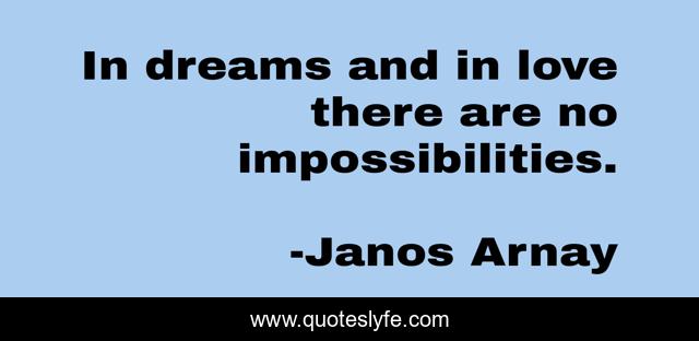 This page presents the quote "In dreams and in love there are no impossibilities.". Author of this quote is Janos Arnay. This quote is about dream, love, affection,.