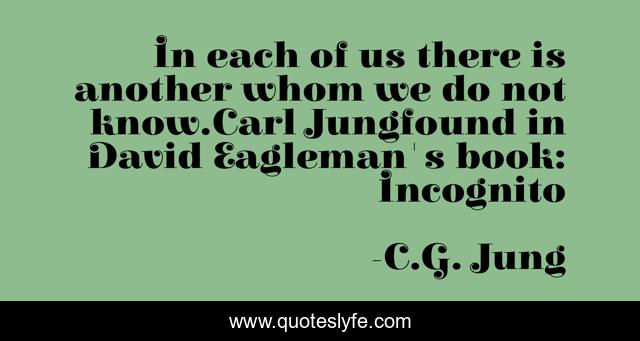 This page presents the quote "In each of us there is another whom we do not know.Carl Jungfound in David Eagleman's book: Incognito". Author of this quote is C.G. Jung. This quote is about brain, consciousness,.