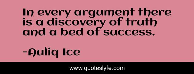 This page presents the quote "In every argument there is a discovery of truth and a bed of success.". Author of this quote is Auliq Ice. This quote is about success, arguments, truth, truth-discovery,.