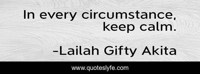 This page presents the quote "In every circumstance, keep calm.". Author of this quote is Lailah Gifty Akita. This quote is about faith, positive-attitude, keep-calm, difficulties-in-life, hope, circumstances,.