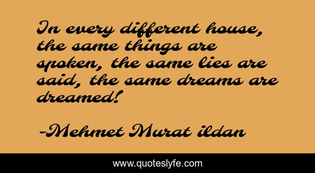 This page presents the quote "In every different house, the same things are spoken, the same lies are said, the same dreams are dreamed!". Author of this quote is Mehmet Murat ildan. .