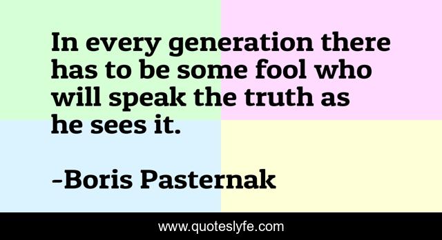 This page presents the quote "In every generation there has to be some fool who will speak the truth as he sees it.". Author of this quote is Boris Pasternak. .