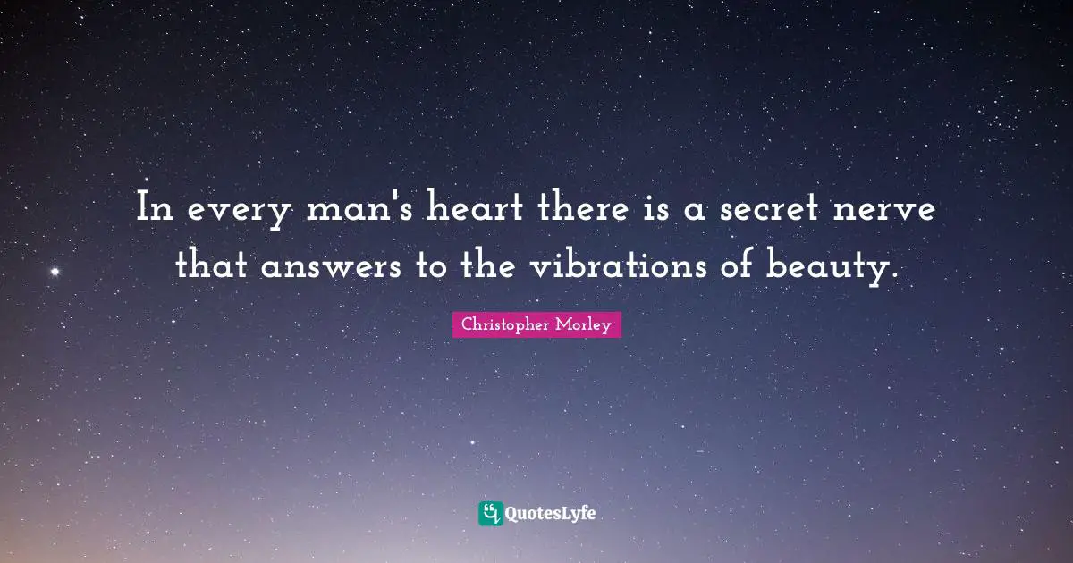 This page presents the quote "In every man's heart there is a secret nerve that answers to the vibrations of beauty.". Author of this quote is Christopher Morley. This quote is about heart, beauty, nerve, secret, vibrations, answer, man,.