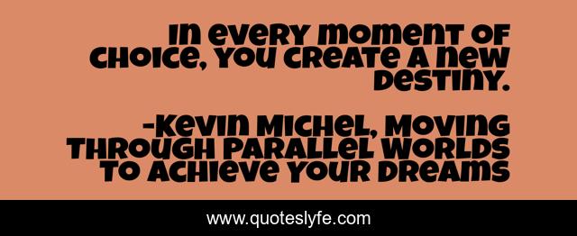 "Kevin Michel, Moving Through Parallel Worlds To Achieve Your Dreams Quotes." Quoteslyfe.com, 2025. Fri. 05 Dec. 2025. <https://www.quoteslyfe.com/quote/In-every-moment-of-choice-you-create-107386>.