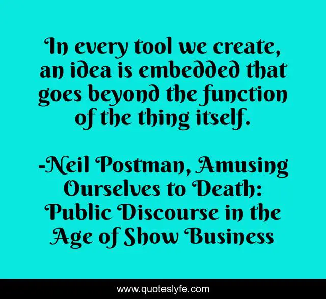 "Neil Postman, Amusing Ourselves to Death: Public Discourse in the Age of Show Business Quotes." Quoteslyfe.com, 2025. Sat. 06 Dec. 2025. <https://www.quoteslyfe.com/quote/In-every-tool-we-create-an-idea-196743>.