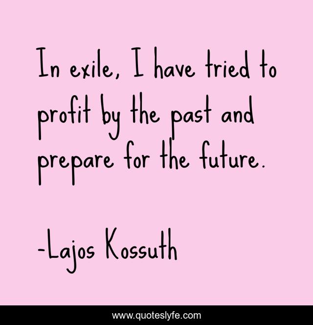 This page presents the quote "In exile, I have tried to profit by the past and prepare for the future.". Author of this quote is Lajos Kossuth. This quote is about past, profit, prepare,.