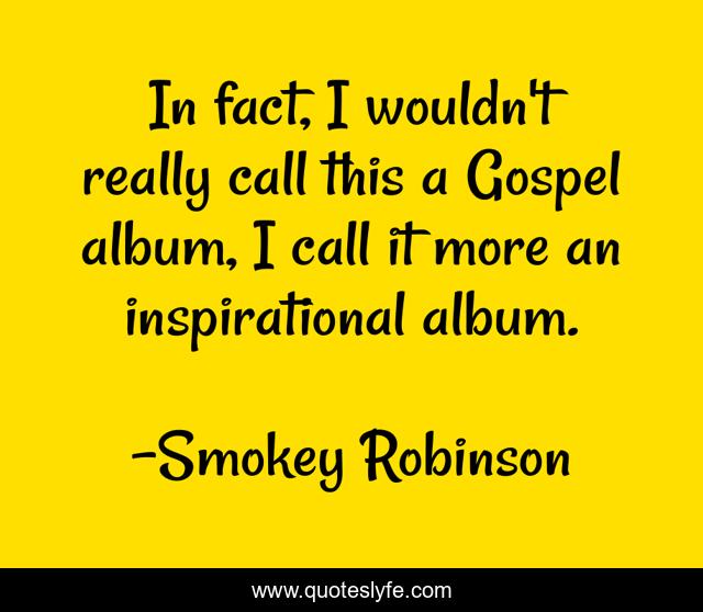 This page presents the quote "In fact, I wouldn't really call this a Gospel album, I call it more an inspirational album.". Author of this quote is Smokey Robinson. This quote is about gospel, call, fact,.